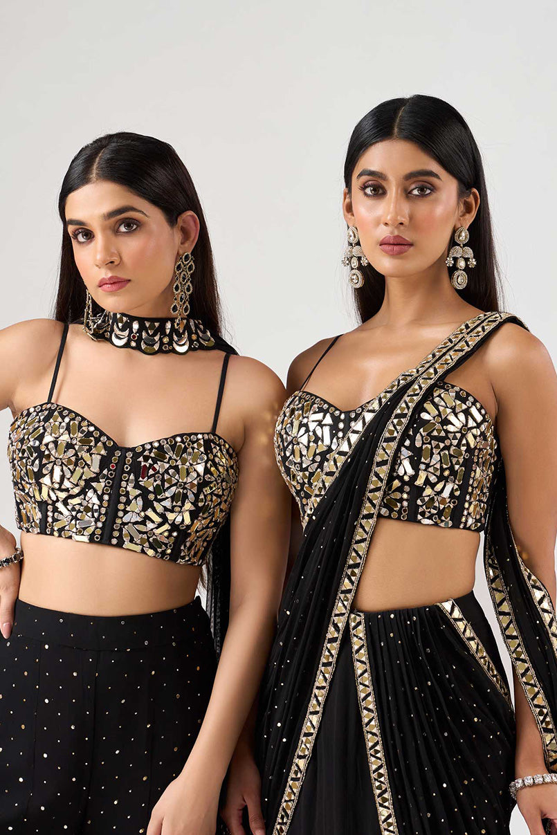 BLACK CORSET SHARARA SET WITH INTRICATE EMBROIDERY