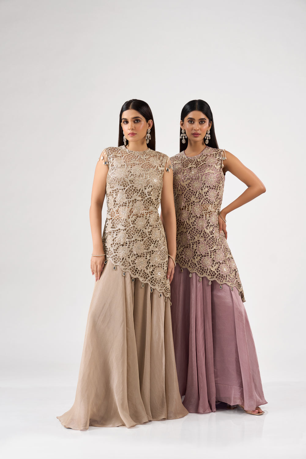 CONTEMPORARY PINK EMBROIDERED HALTER NECK PLAZO SET