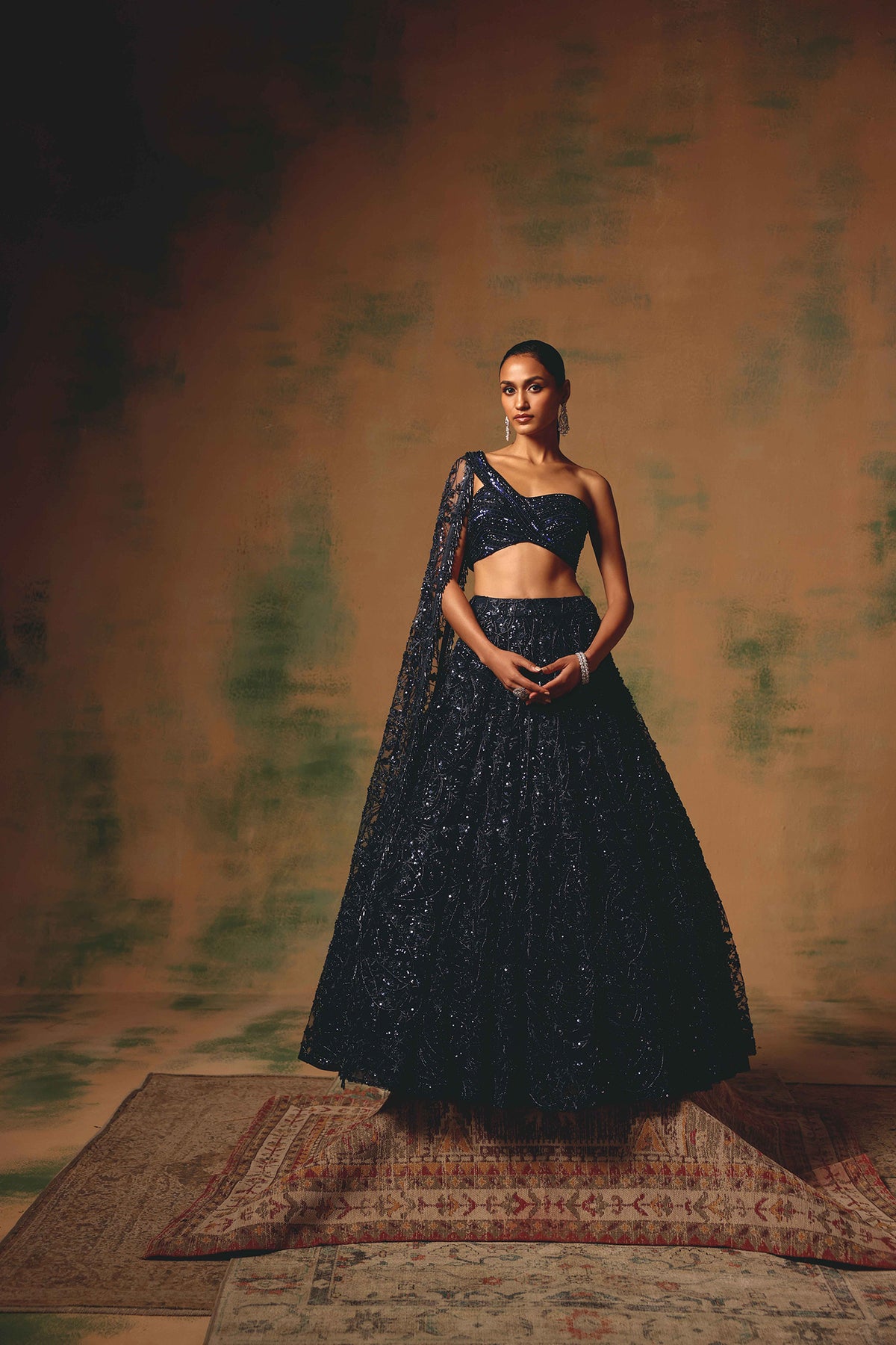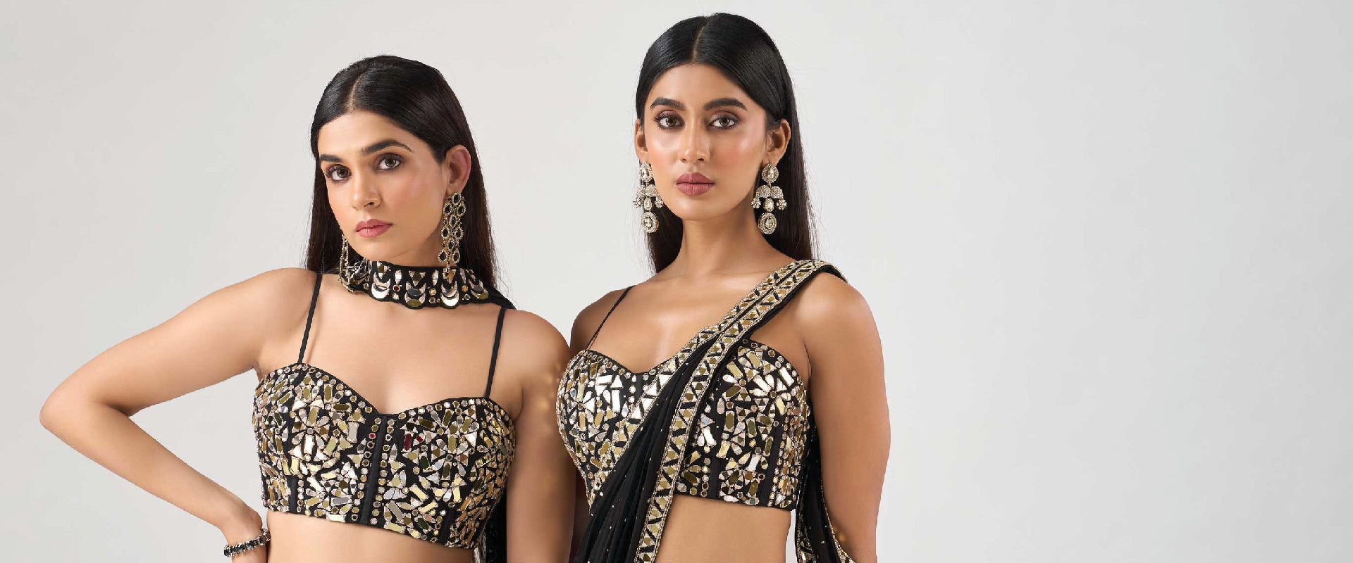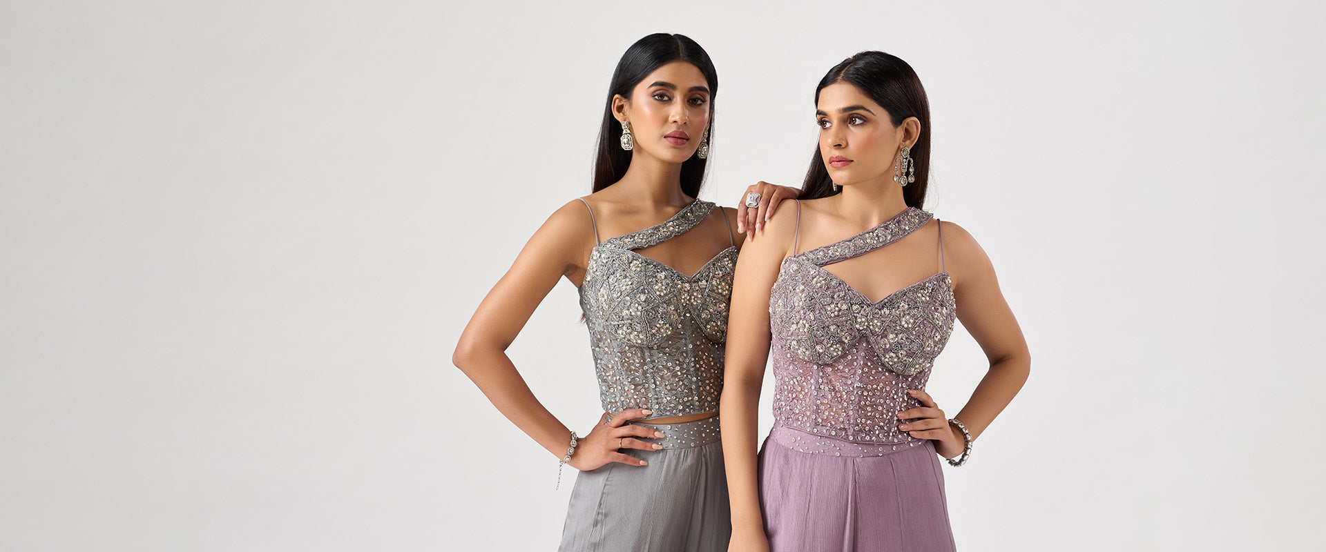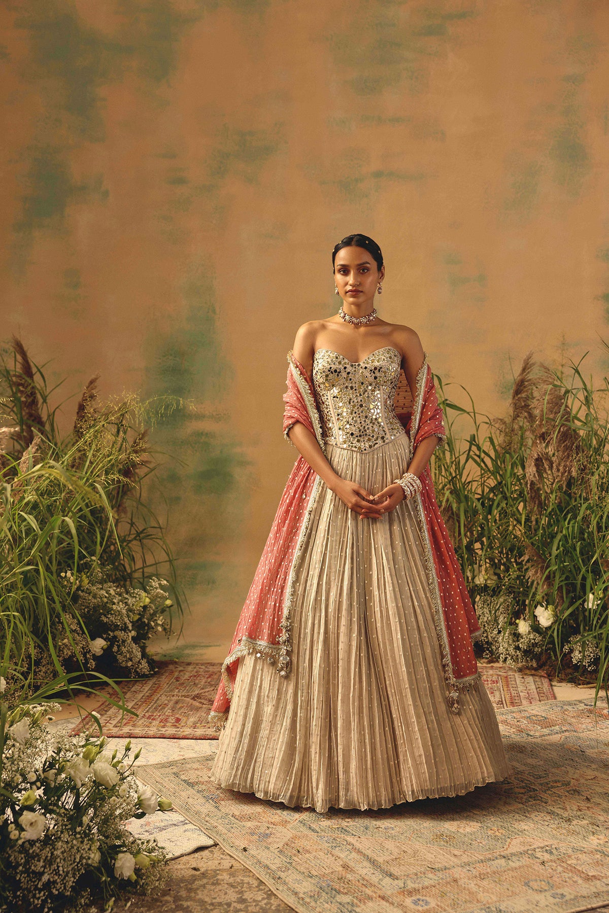 MULTICOLORED CRYSTAL EMBELLISHED CORSET LEHENGA SET