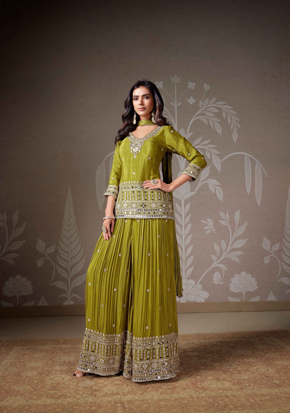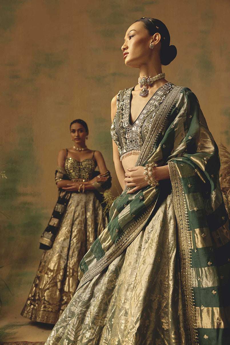 GREEN BANARASI MIRROR EMBROIDERED LEHENGA SET