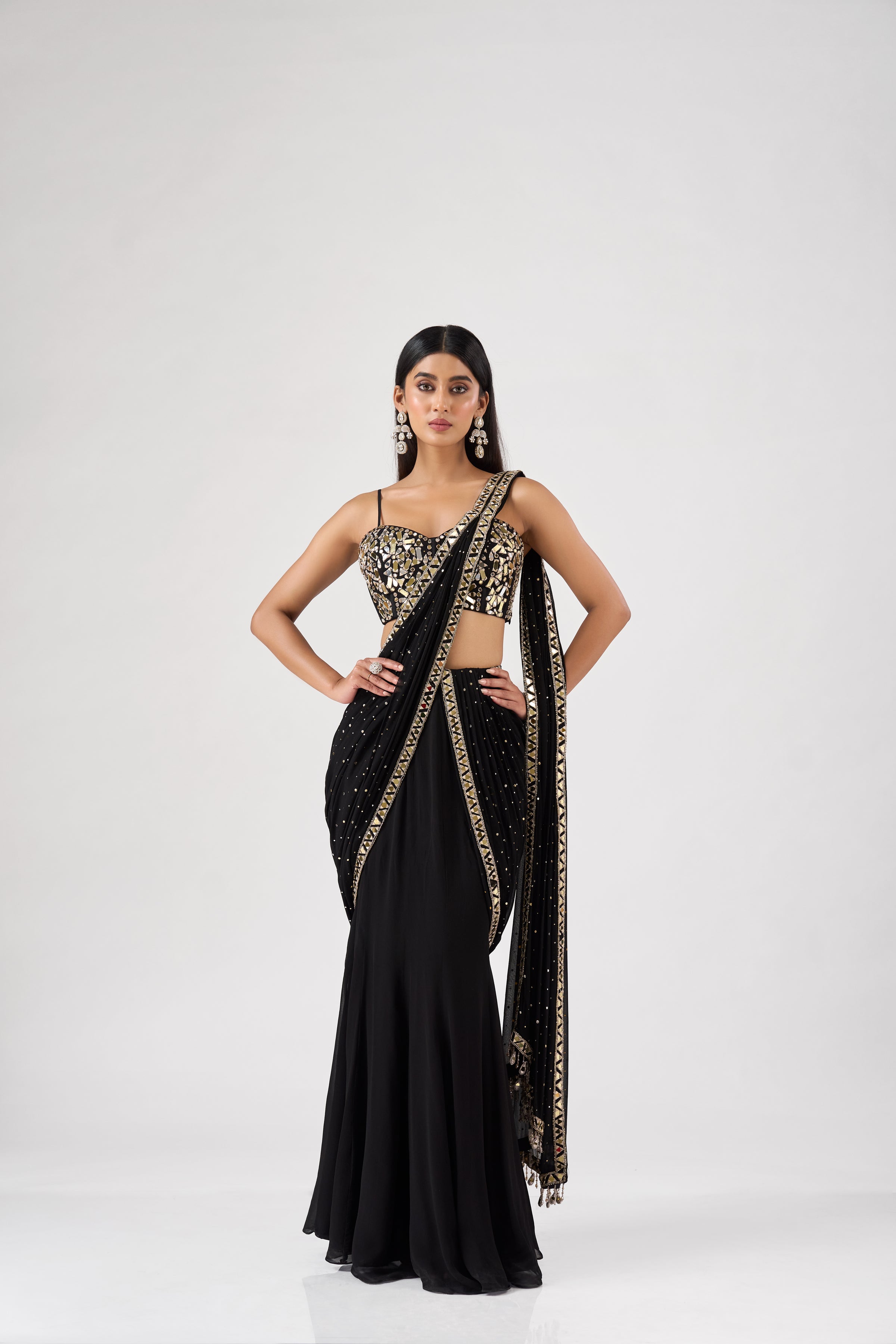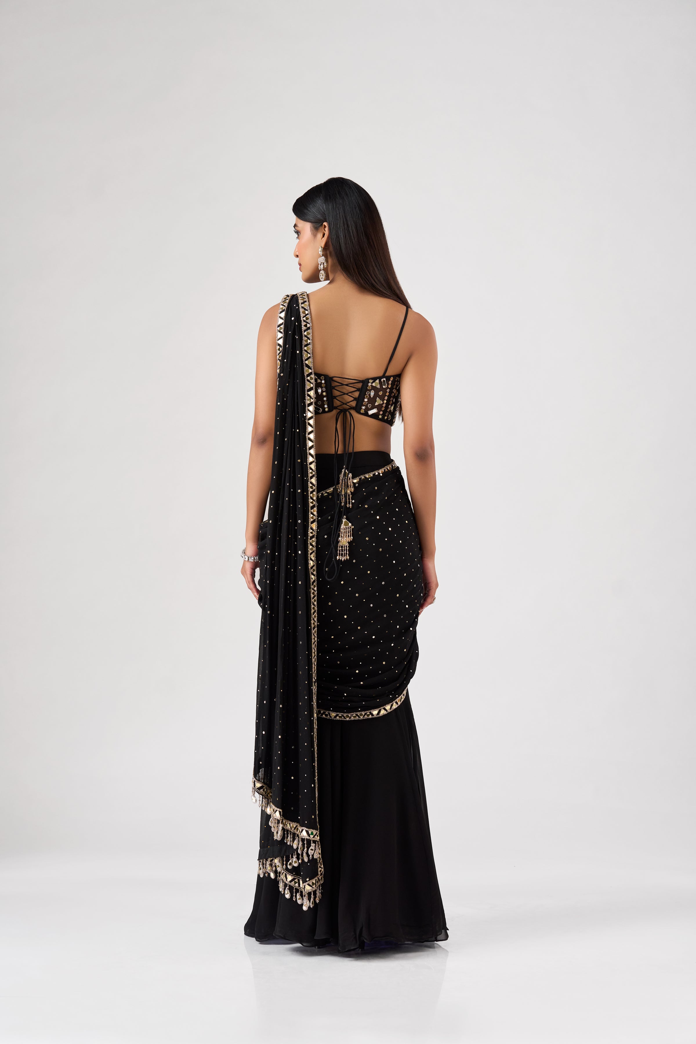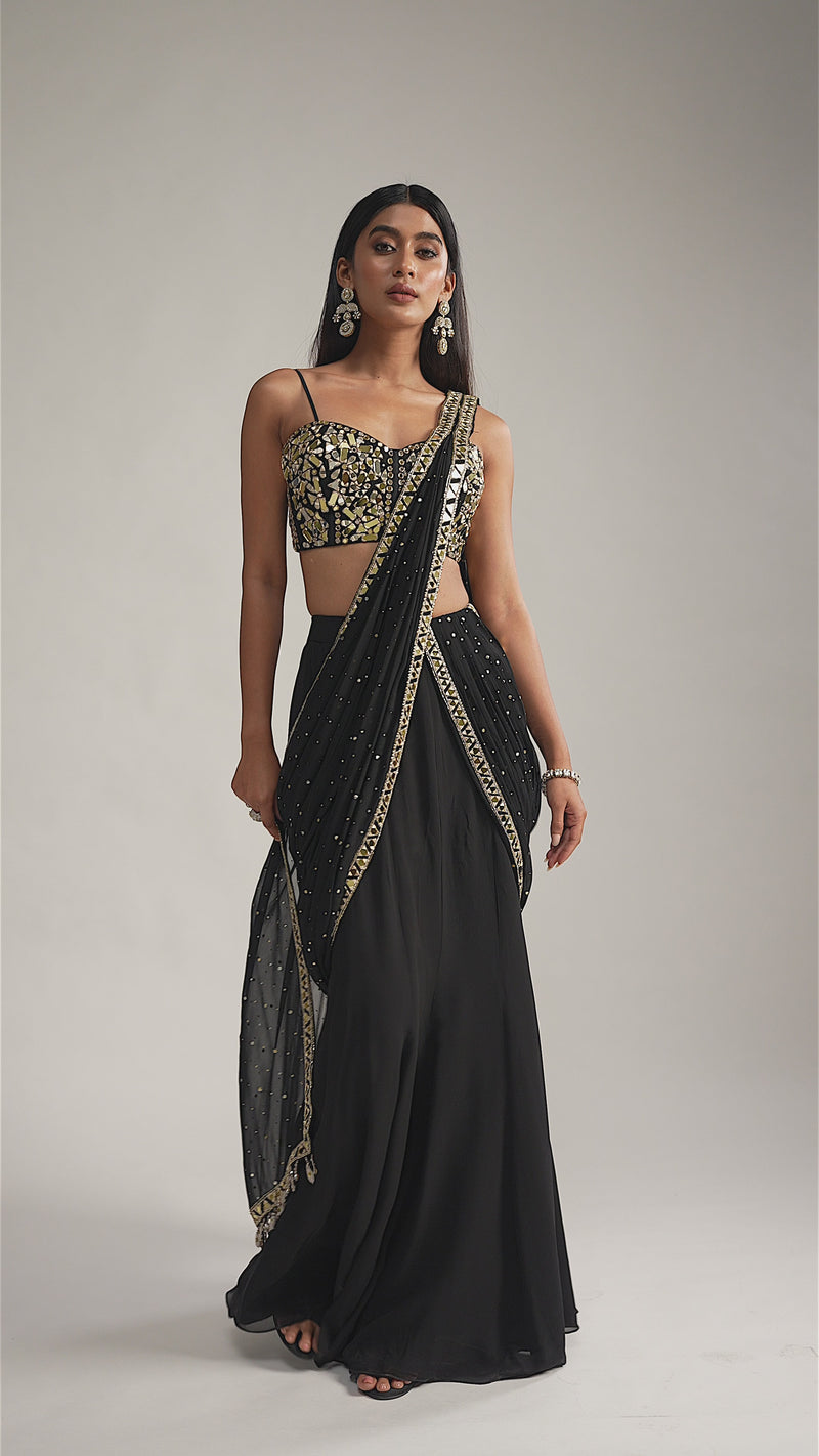 BLACK GEORGETTE MIRROR EMBROIDERED SAREE SET